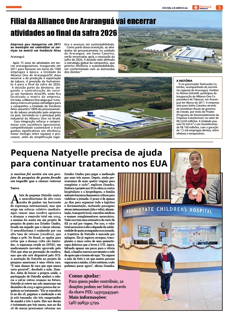 Jornal Enfoque Popular – 2849 – Alliance one fecha as portas em Araranguá 16 de janeiro de 2026 Jornal Enfoque Popular 0 Comments Twitter Facebook LinkedIn Email More to Explore 12 Anos depois: Araranguá terá novo Presídio Regional Comments (0) Deixe um comentário Cancelar respostaO seu endereço de e-mail não será publicado. Campos obrigatórios são marcados com *Nome * E-mail * Site Salvar meus dados neste navegador para a próxima vez que eu comentar. Comentário *