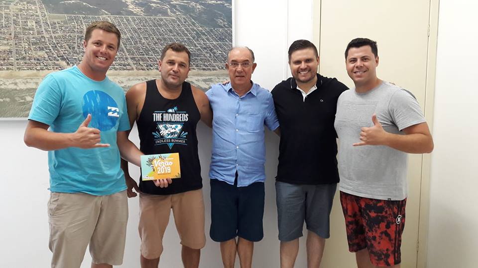 O prefeito Juscelino da Silva Guimarães, o Mineiro, e o secretário de administração e finanças, Felipe Keller, receberam nesta terça-feira, dia 8, os representantes da Associação de Surf de Balneário Arroio do Silva (Asbas). Na oportunidade a parceria foi reforçada e alguns detalhes dos eventos a serem realizados estiveram em pauta.