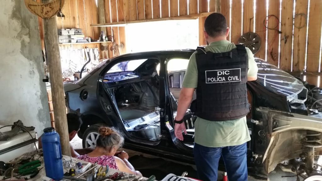 Conforme a denúncia, o veículo roubado, um VW/Voyage, estaria sendo desmanchado em um barracão no bairro Caverazinho. Os agentes da Polícia Civil se deslocaram até o local e flagraram um homem e uma mulher desmanchando o carro. Em seguida o proprietário do barracão chegou ao local e também foi preso.