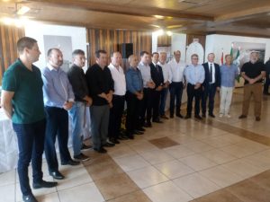 Entre as autoridades presentes na solenidade estavam o presidente da Fecam e prefeito de Tubarão Joares Ponticelli, o deputado estadual Luiz Fernando Cardoso, o Vampiro, e a deputada federal, Geovania de Sá.