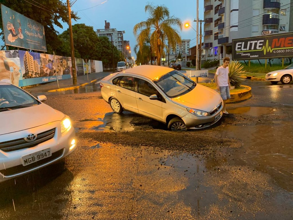 Os leitores do portal post.tv.br pelo WhatsApp (48) 9.9612.6504 colaboram com imagens da rótula do cruzamento da Avenida XV de Novembro com a Rodovia Amaro José, no Centro de Araranguá, que mostram o momento em que um veículo foi surpreendido por uma cratera em seu entorno.