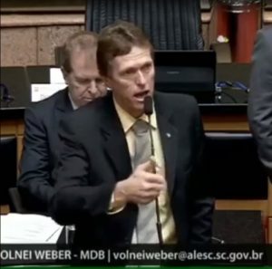 O vereador Eraldo “Peri” Soares (Progressistas) postou em suas redes sociais, nesta terça-feira (12), o vídeo em que o deputado estadual Volnei Webber, do MDB, mesmo partido do prefeito de Sombrio, Zênio Cardoso, discursa na Assembleia Legislativa em à parte no discurso do colega Ivan Naatz (PV).