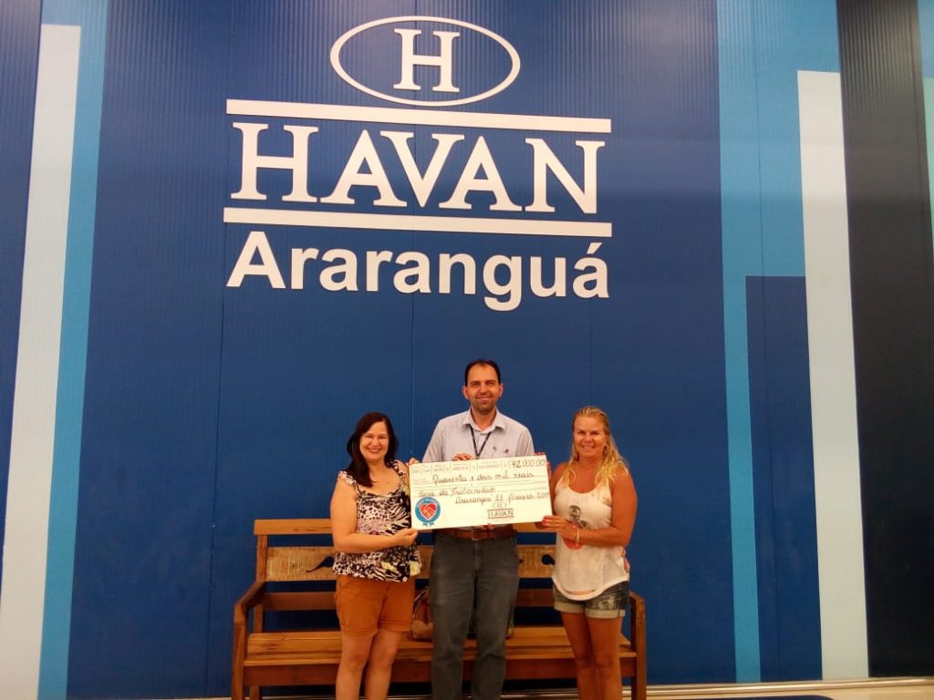O ano inicia com boas notícias para o desenvolvimento das atividades na Casa da Fraternidade. Enquanto as inscrições estão abertas para as oficinas voltadas para a comunidade, a diretoria recebeu R$ 42 mil por meio do Troco Solidário da Havan. Na tarde desta segunda-feira, 11 de fevereiro, a gerência da loja Havan de Araranguá entregou para a presidente da Casa da Fraternidade, Cátia Hahn, e a professora do Reforço Escolar, Telma Pugliesi, o cheque simbólico no valor de R$ 42 mil.