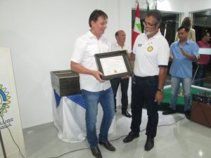 Durante a inauguração da ala administrativa do Lar São Vicente de Paulo, que aconteceu na noite de segunda, 25, o presidente da Câmara de Vereadores, Daniel Viriato Afonso (PP), recebeu um Certificado de Reconhecimento e gratidão do próprio lar e o Rotary Club, que mantem a entidade. Fizeram a entrega da homenagem os presidentes do Lar e do Rotary, Aldoir Mota e Maureci Rodrigues, respectivamente.