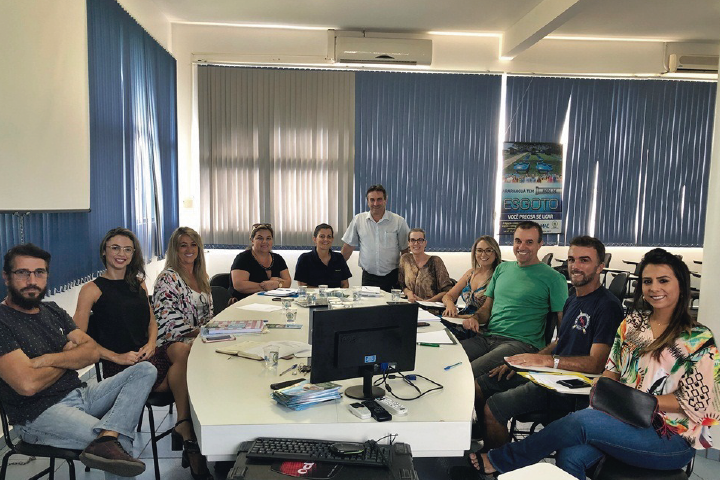 O diretor Geral do SAMAE, José Hilson Sasso, a diretora administrativa, Margarete Timboni Baran, e a química Fernanda Fernandes, se reuniram com diretores de escolas municipais para repassar as atividades que serão realizadas na tarde do Dia Mundial da Água.