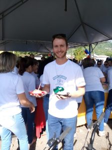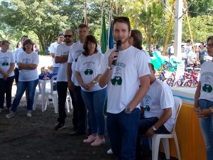 Após o passeio ciclístico que abriu as comemorações dos 27 anos de Morro Grande, o público se juntou sob a estrutura preparada na praça da cidade e cantou os parabéns para a aniversariante.
