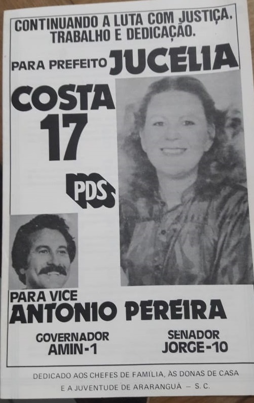 Mesmo sendo a mais votada (4.367 votos), Jucélia – herdeira de Mané Costa, com 760 votos a mais que Mota, não foi eleita. Os outros dois nomes do PDS, Ernesto Grechi Filho (2.627 votos) e Eduardo Krueger (16 votos), ajudaram a somar apenas 7.010 votos.