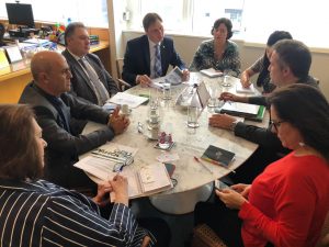 O prefeito de Praia Grande, Henrique Maciel (PSDB), e o prefeito de Cambará do Sul/RS, Schamberlaen José Silvestre, uma assessora da deputada federal Geovânia de Sá (PSDB) e o deputado federal Lucas, do Rio Grande do Sul, estiveram reunidos nesta terça-feira (9) no Escritório da Unesco, em Brasília, tratando do projeto Geoparque Caminhos dos Cânions do Sul, iniciativa de sete municípios, 4 de Santa Catarina e 3 do Rio Grande do Sul.