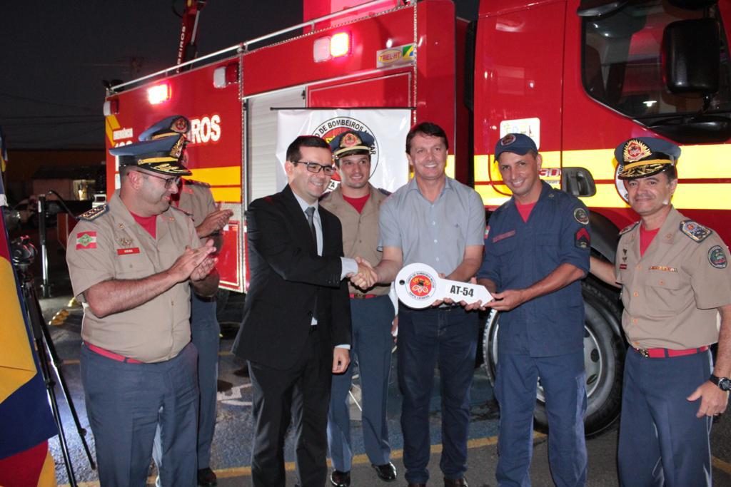 No mesmo dia em Araranguá aconteceu a solenidade de formatura de 30 novos Bombeiros comunitários e a entrega de uma nova viatura caminhão de combate a incêndio a Auto Tanque AT-54, viabilizada com recursos do Fundo de Restituição dos Bens Lesados do Ministério Público, totalizando um investimento de R$ 705.000,00.