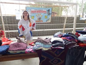 A associação Bicho Feliz também marcou presença com a realização de um bazar beneficente com a comercialização de roupas novas e usadas com valores acessíveis.