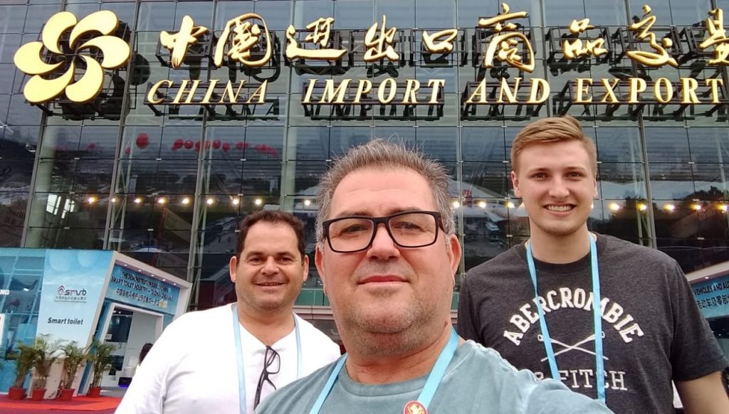 Os empresários Zelmar Vieira, o Pedrinho da Aspekto Group, e Leandro Camilo, do grupo Camilo & Ghisi, e Geraldo Mangela, participaram da maior feira do mundo, a Canton Fair, na China.