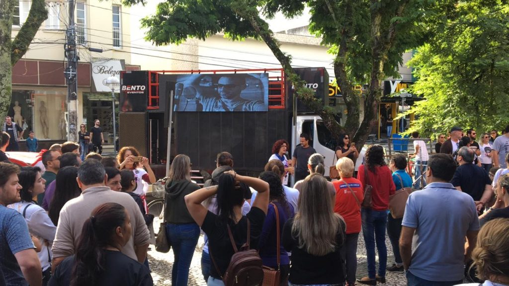 Estudantes, professores, servidores, sindicalistas, trabalhadores e outros representantes da sociedade civil organizada se manifestaram na manhã desta quarta-feira, 15, no Calçadão da Getúlio Vargas, em Araranguá, para protestar contra o corte de aproximadamente 30% no orçamento das Universidades públicas e Institutos Federais em todo o país, anunciado pelo governo de Jair Bolsonaro. A manifestação atendeu a um chamado nacional de greve geral, que teve por objetivo protestar contra os cortes na educação e a reforma da Previdência.