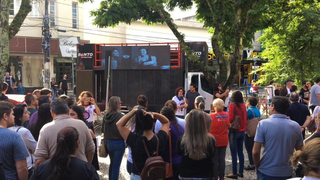Em Sombrio, a manifestação contou com apresentações, passeata e exibição da bandeira do Brasil.