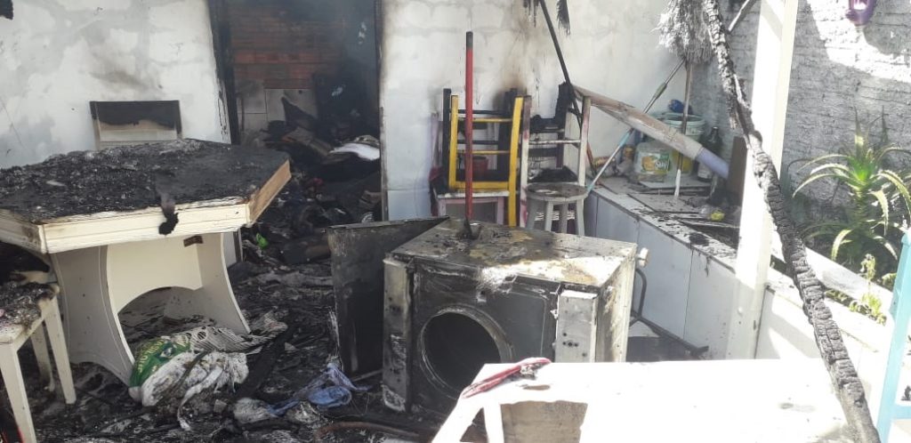 A casa, que tinha aproximadamente 120m², teve fogo concentrado em uma edícula de quase 9m², onde funcionava uma espécie de ateliê de costura. O Corpo de Bombeiros utilizou dois lances de mangueira, em uma linha de ataque direto de ½”. Foram utilizados para extinção do fogo, quase 2.500 litros de água.