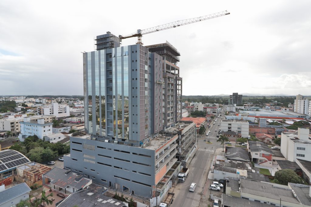 Impossível não se surpreender com a imponente construção do maior prédio de Araranguá. Localizado no Centro da cidade, o Infinity Business e Residence enche os olhos de quem cruza pela Avenida XV de Novembro e com o avançar da obra, alguns setores já em fase de acabamento, é possível imaginar como vai ficar depois de pronto.