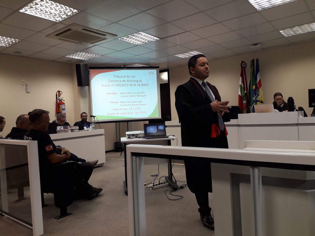 O crime teria acontecido na madrugada de 13 de maio de 2018, há um ano. O Tribunal iniciou os trabalhos por volta de 9 horas da manhã no Fórum Colombo Salles, de Araranguá. Os réus, presos desde 6 de junho de 2018, foram submetidos ao crivo de um júri popular.