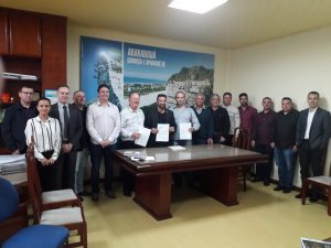 Deputados Daniel Freitas e Jessé Lopes estiveram em Araranguá na manhã desta sexta-feira para convidar o prefeito Mariano Mazzuco e lideranças para reunião do Fórum Parlamentar Catarinense, que acontece em Criciúma na próxima sexta-feira, 24, na sede da ACIC. Trata-se de uma ação inédita, já que o Fórum, normalmente, costumava