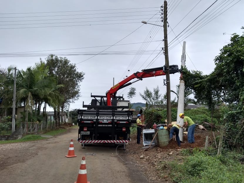 Está sendo realizada melhoria do sistema de distribuição de energia no Bairro Leão em Praia Grande, obra que faz parte do Plano Estratégico da CEPRAG de 2019.