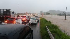 BR-101 paralisada por causa das chuvas – cidades do Sul alagadas