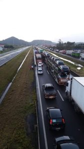 O trânsito está totalmente interrompido no sentido sul e com apenas uma faixa liberada no sentido norte.