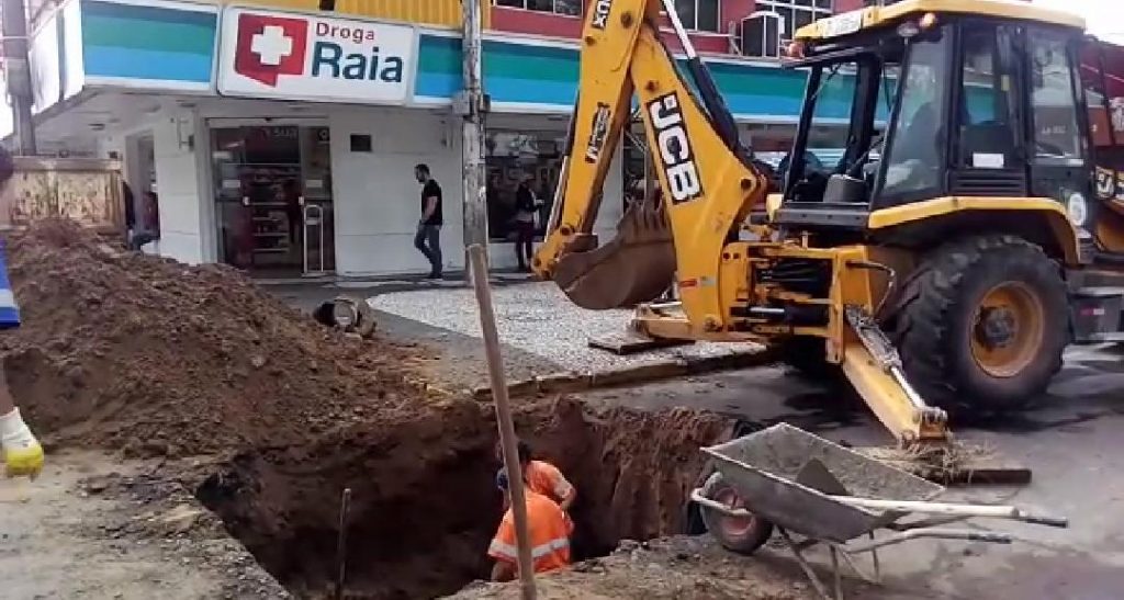 Rompimento de dois canos da galeria pluvial interdita calçadão de Araranguá.