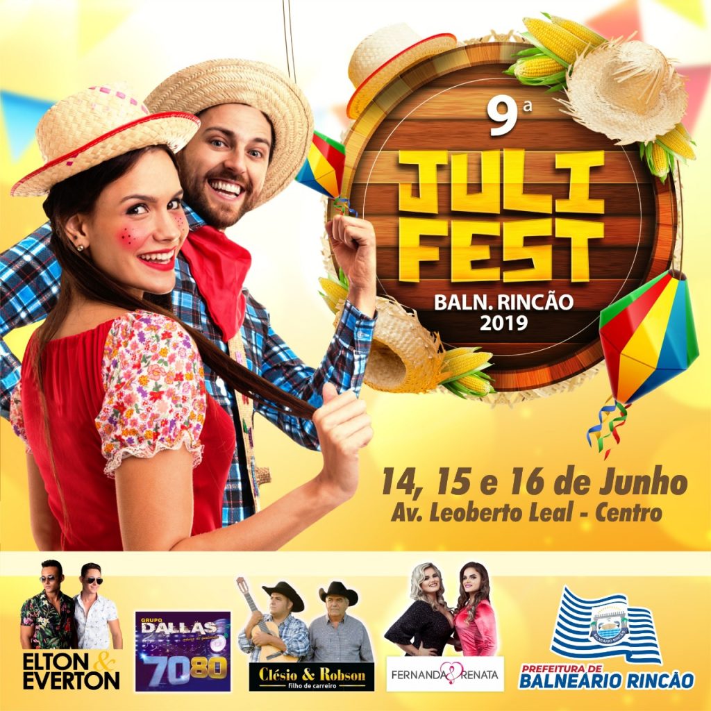 Cachorro-quente, pipoca, quentão, cocada e outras guloseimas, este será o cardápio apresentado pelas escolas de Balneário Rincão neste final de semana, durante a 9ª JuliFest. A tradicional festa começa nesta sexta-feira, dia 14, e segue até domingo, dia 16, com apresentações culturais com os alunos de todas as instituições de ensino, além de shows regionais.