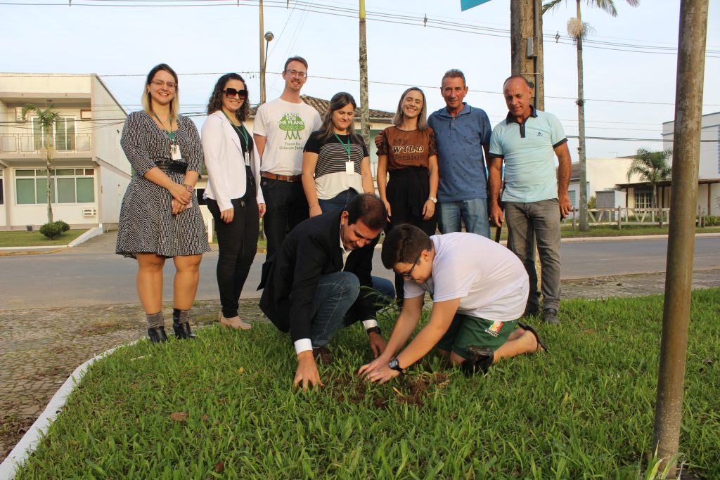 Com a foto para o tradicional pôster com um embaixador tapando a boca do prefeito Arlindo Rocha e que vai receber a frase “Stop Talking Start Planting” (“Pare de falar, comece a plantar”), foi concluída nesta quarta-feira, dia 12, a etapa de Maracajá do projeto “Plant-for-the-Planet”. Após a foto, Arlindo e o embaixador do projeto na cidade, Cauã Caetano, aluno da Escola Municipal Eulália Oliveira de Bem, plantaram uma muda de palmiteiro na Praça Frei Euzébio, em frente ao Paço Municipal.