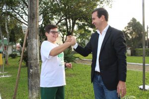 Acompanhado da diretora de Educação Cristiane Sant`Ana e das secretárias de Meio Ambiente e Turismo e de Administração, Gisele Dal Pont e Marluci Vitali, o prefeito Arlindo Rocha, ressaltou a importância do “Plant-for-the-Planet” incentivando e motivando os estudantes a plantar árvores e preservar o meio ambiente. “Vamos continuar apoiando iniciativas que mostram na prática seus resultados”, disse Arlindo, seguindo para a foto característica e plantio do palmiteiro.