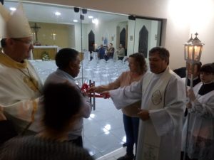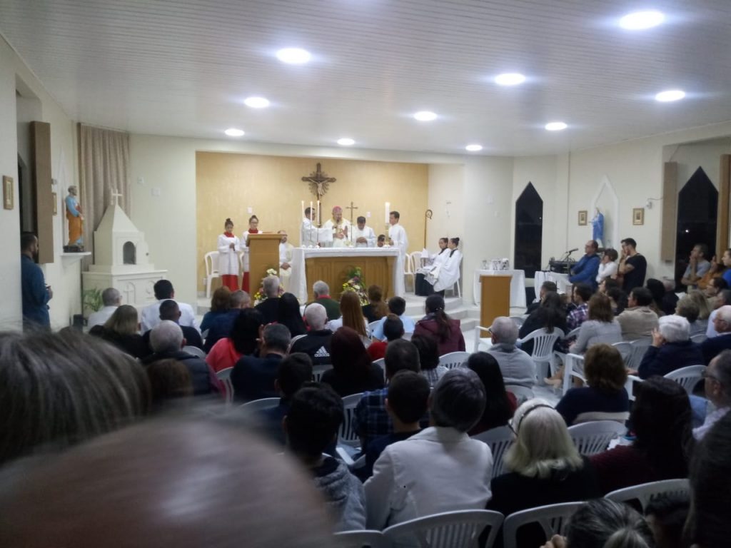 A missa de inauguração contou com a presença do bispo da diocese de Criciúma, Dom Jacinto Inácio Flach, que abençoou o local e falou sobre como se sentia abrindo uma nova igreja. “Para mim é uma alegria muito grande, por que esta não é uma realidade em outros lugares. Muitos países estão fechando igrejas por falta de fieis e nós estamos abrindo e sendo restauradas. Isso é um sinal da fé do nosso povo, que não desanima, busca. Construir uma igreja é erguer uma farmácia, um hospital de Deus no meio do povo. Para este bairro e toda a nossa diocese, é uma grande bênção”, declarou.