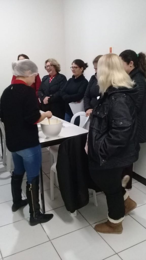 No encontro de junho, a nutricionista passou receitas sem lactose com aula teórica e prática. No grupo estava a aposentada Conce Furlanetto, que se interessou pelo curso para aprender comidas mais saudáveis.