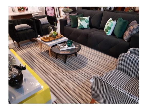 A escolha do tapete é fundamental para o sucesso de um ambiente. Tanto nos quartos, sala de jantar, circulação ou sala de estar. A falta de alguns centímetros pode fazer muita diferença. É muito difícil vermos a escolha errada por ter optado por uma peça maior, a maioria das vezes, falta tapete. Em uma sala, ele deve ficar pelo menos 10cm embaixo do sofá e passar pelo menos 10cm pra cada lado do sofá, isso deve acontecer igualmente caso tenha poltronas no mesmo ambiente. Já com relação ao móvel da TV, o ideal é que o tapete encoste nele. Obedecendo essas regrinhas básicas, seu ambiente parecerá maior pois mostrará menos piso e também ficará mais clean e sofisticado.