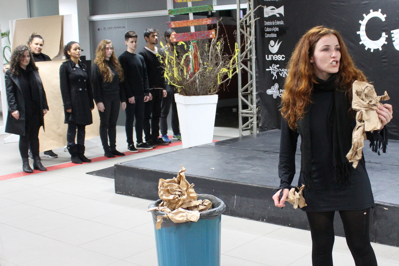 Quem passou pelo palco do projeto Quintas Culturais na Unesc na noite desta quarta-feira, dia 3, por volta das 21h pôde acompanhar a performance especial realizado pelos acadêmicos da 4ª fase do curso de Bacharelado em Teatro da Universidade.