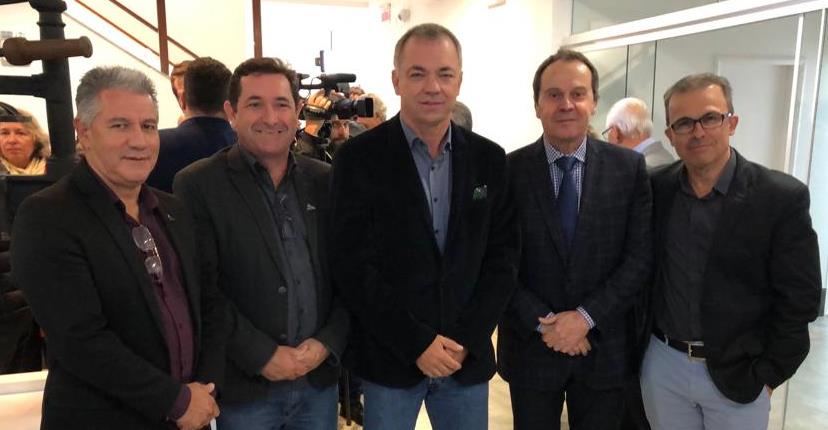 A cerimônia foi prestigiada por representantes das associações de Diários de Santa Catarina (ADI-SC) e dos Jornais do Interior (Adjori-SC), que consolidam o processo de integração para garantir uma maior cobertura jornalística. O interesse na pauta é porque também no interior do estado existe um número considerável de embarcações que em breve terão onde estacionar na área central de Florianópolis. Na foto, da esquerda para a direita, Valmoci de Souza e José Roberto Deschamps, respectivamente vice e presidente da Adjori-SC, o prefeito Gean Loureiro, o presidente da ACI, Ademir Arnon, e o presidente Institucional da ADI-SC, Nelson Pereira, que estava acompanhado do vice-presidente de Gestão e Finanças da entidade, Adriano Kalil.