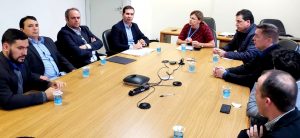 Lale foi nesta quinta-feira (18) até a presidente da Casan, Roberta Maas dos Anjos, acompanhado dos vereadores Prezalino “Preto” Ramos Neto (PSDB) e Fabrício Estevan de Oliveira, o Fabrício do Quina (PSDB), e o superintendente regional da Casan Sul/Serra, Gilberto Benedet Junior.