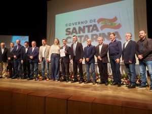 Representaram o governo Moisés na cerimônia a vice-governadora Daniela Reinehr, o secretário de Infraestrutura e Mobilidade, Carlos Hassler, e o chefe da Casa Civil, Douglas Borba, e aos municípios, o presidente da Fecam, Joares Ponticelli.