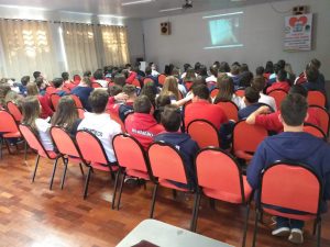 As turmas do 1° ano do ensino médio do Colégio Murialdo, receberam a palestra ”Quem ama cuida”. O projeto é desenvolvido pela Associação dos Agentes Penitenciários e de Segurança Socioeducativos de Santa Catarina. Eles estão realizando um trabalho voluntário de combate e prevenção às drogas, nas escolas e gratuitamente, as palestras acontecem nos horários de folga da atividade prisional. Os alimentos que são arrecadados pela escola, foram doados ao Lar de Idosos São Vicente de Paulo,de Araranguá.