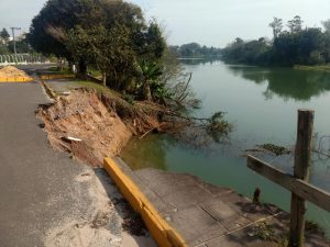 O desabamento das margens da Avenida Beira Rio, que literalmente “engoliu” um pedaço das margens do rio Araranguá, está indo para o terceiro mês. O secretário de Obras, Guilherme Peruchi, está concentrado no momento em usar a grande quantidade de material (asfalto à quente) para 60 dias de “operação tapa buracos”.