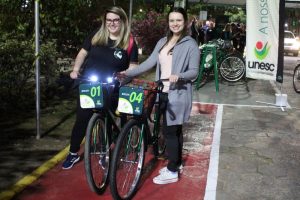 A partir da noite desta segunda-feira, estudantes, professores, funcionários e visitantes que estiverem na Unesc têm a oportunidade de utilizar bicicletas para transitar pelo campus. Trata-se do projeto Unesc Bike, ação promovida pela reitoria da Instituição como forma de melhorar a experiência daqueles que vivem a Universidade. Em cerimônia com descerramento de uma placa de inauguração, a Unesc deu início nesta noite ao projeto, que conta com 50 bicicletas disponibilizadas para empréstimo em quatro pontos do campus. Para que a ação fosse colocada em prática uma ciclovia foi sinalizada em todo o espaço da Universidade.