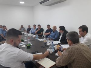 O secretário de Infraestrutura, Carlos Hassler, acompanhado de técnicos de sua pasta, foi recebido na sede da Amesc, por 12 prefeitos e 1 vice-prefeito, Edson Jair Dagostin, de Turvo. Ausência apenas de Jonas de Souza Gomes (MDB), de Passo de Torres, e Nelson Cardoso de Oliveira (PSD), de Santa Rosa do Sul.