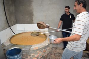 Além de participar e auxiliar em todas as etapas, os turistas e visitantes vão conhecer um pouco do dia a dia do casal através do turismo de experiência. E para oficializar o início das atividades, um grupo de convidados passou o dia na propriedade. O turismo de experiência já existe há alguns anos e foi o foco do agricultor Aderval, conhecido como Val, quando resolveu investir na área. “Eu já fabrico o melado, o açúcar e vendo nos mercados, feiras e para quem vem buscar aqui em casa, mais eu queria algo mais, queria que o visitante conhecesse todo o processo. Foi assim que surgiu a ideia de preparar um espaço e receber os turistas para que eles pudessem conhecer o meu dia a dia e levar não só o açúcar que fabricamos, mas a minha vivência”, conta Val.