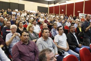 “Um dia histórico para Forquilhinha e região. Pela primeira vez nós recebemos um governador em seu primeiro ano de mandato para fazer o anúncio de investimentos na tão sonhada pavimentação da Rodovia Jacob Westrup”. As palavras do prefeito Dimas Kammer resumem o sentimento da comunidade e autoridades que lotaram o auditório da Coopera, nesta quinta-feira, 14, para acompanhar o governador Carlos Moisés anunciar os recursos na ordem de R$ 8 milhões para a pavimentação da Rodovia Jacob Westrup.