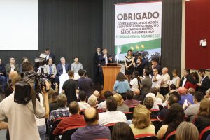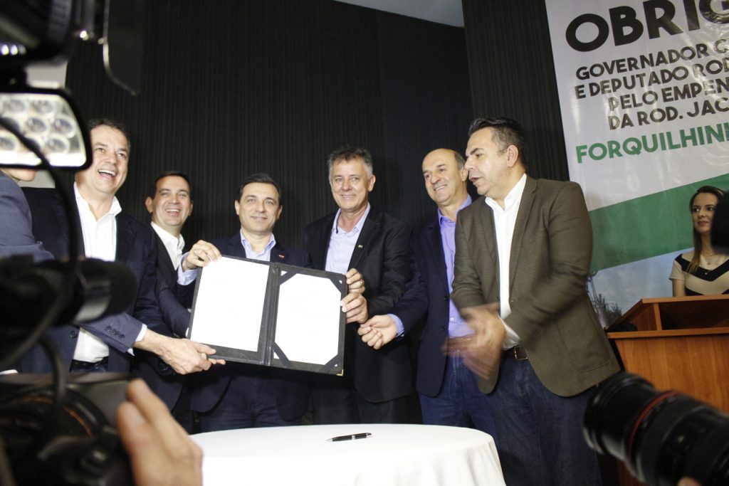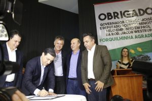 Os ex-prefeitos de Forquilhinha foram chamados ao palco em reconhecimento a mobilização histórica em prol da Rodovia Jacob Arns. Além do anúncio de investimentos da pavimentação, o governador também liberou recursos para outros municípios e assinou o decreto que estabelece Forquilhinha, terra de Zilda Arns, como a capital catarinense da Pastoral da Criança.