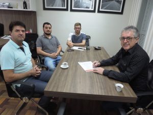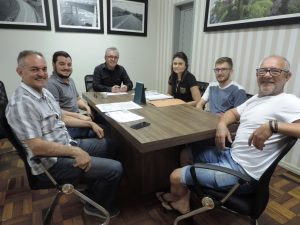 Na manhã de segunda-feira (23), o engenheiro responsável pela Empresa BRE Construções LDTA, Luiz Tomasi, participou de uma reunião técnica com a equipe de projetos, convênios e engenharia, sobre a execução da obra de construção do Museu da Mecanização Agrícola, anexo ao Parque de Exposições.