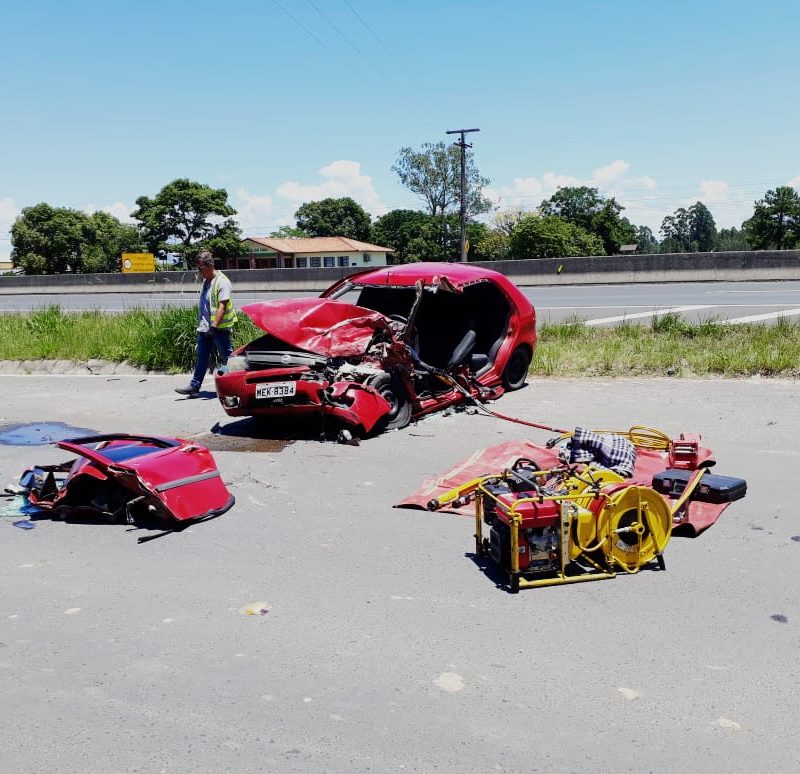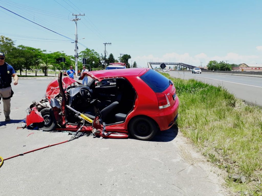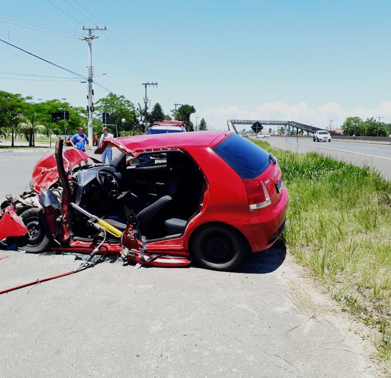 Eram 11 horas da manhã desta segunda-feira, dia 6, quando o Corpo de Bombeiros foi acionado para atender a um acidente de trânsito em Araranguá. A colisão foi entre um carro e um caminhão às margens da BR 101, no bairro Polícia Rodoviária. O condutor do carro ficou preso às ferragens, teve fratura exposta na coxa esquerda e ferimentos no lado esquerdo do rosto. Após todos os procedimentos, o paciente foi encaminhado estável até o Hospital Regional de Araranguá.