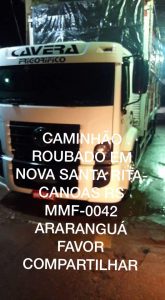 O empresário Rodrigo da Silva Turatti, do Frigorífico Caverá, confirmou o roubo de um caminhão frigorífico da frota da empresa, de placa MMF-0042, na cidade de Canoas/RS, no Posto Buffon.