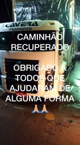 O empresário Rodrigo da Silva Turatti, do Frigorífico Caverá, informou que FOI RECUPERADO o caminhão que havia sido roubado da frota de sua empresa, de placa MMF-0042, na cidade de Canoas/RS, no Posto Buffon. Caminhão de Araranguá roubado no Rio Grande do Sul