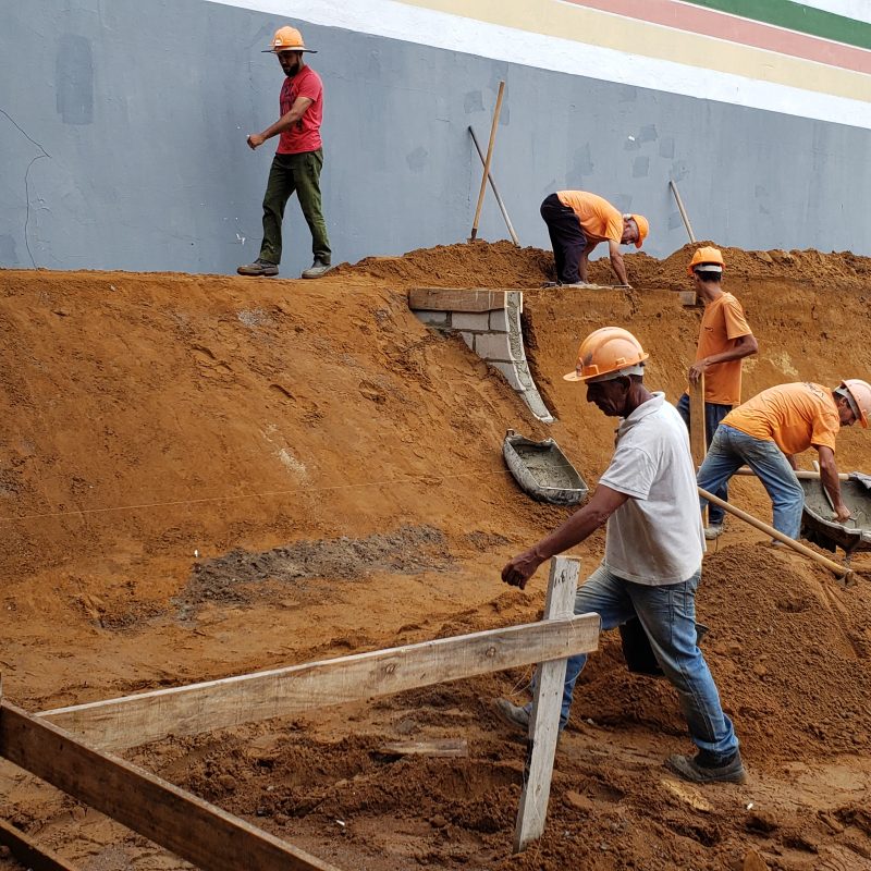 As fotos que ilustram esse material foram tiradas ontem, quinta-feira, 16 de Janeiro. A Avenida Antônio Sant’Helena está recebendo base para a colocação de asfalto em toda sua extensão, com exceção do trecho já pavimentado com paver, em sua primeira quadra, no Centro. A rua Pedro Tristão de Melo, que teve ordem de serviço assinada esta semana pela prefeita em exercício Gislaine Cunha já recebe colocação de meio fio e deve ser concluída em três semanas. E a pista de skate começa a ganhar forma, numa obra desenhada por especialistas no assunto e amplamente discutida com representantes dos skatistas para ficar a melhor do estado.