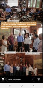 Algumas lideranças do grupo político de Evandro Scaini (PSD) foram recebidas na sexta-feira (7), pelo governador Carlos Moisés (PSL) e pelo deputado federal Fábio Schiochett (PSL), presidente estadual da sigla.