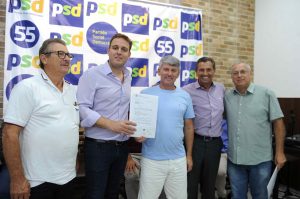 Na foto, Dassoler, Guidi, vereador Paulinho, Júlio Garcia e o vice-presidente do PSD de Araranguá, Giancarlo Soares de Souza.