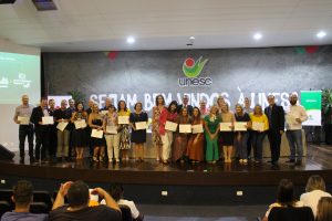 A reitora da Unesc, Luciane Bisognin Ceretta e o vice, Daniel Preve, empossaram os novos gestores da Universidade, na tarde de sexta-feira (28/2), com a presença de professores, alunos e funcionários. Na solenidade, a Reitoria acolheu os novos membros da equipe da gestão universitária, assessores, coordenadores de cursos de graduação